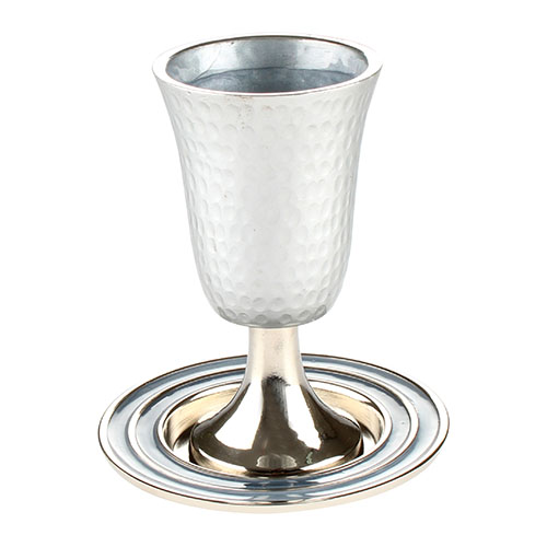 Art Judaica Aluminum Kiddush Cup 14 Cm With Saucer- Silver