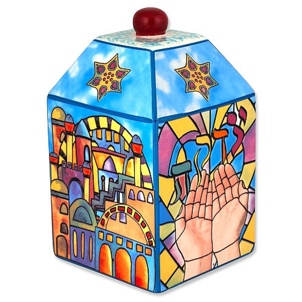 CERAMIC TZEDAKAH BOX- SOCCER, 6.5 CM