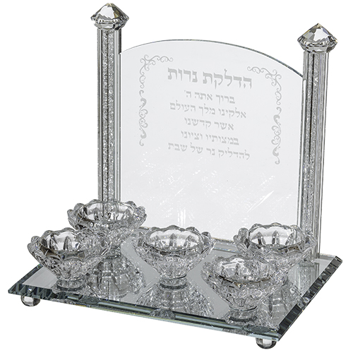 Crystal 5 Brenches Candlesticks With Candle Lighting Blessing