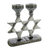 Art Judaica – Elegant Silvered Polyresin Shofar Candlesticks – Jerusalem design 15 cm