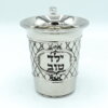 Art Judaica Nickel Kiddush Cup 15cm With Saucer- Leaves Design