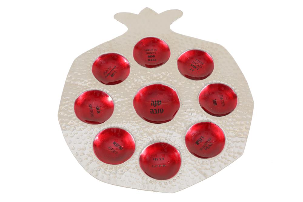 Art Judaica Rosh Hashana Hammered Plate, Dark Red