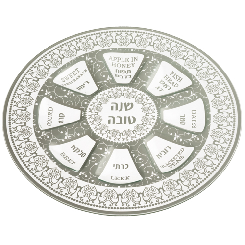 Glass Rosh Hashana Ornate Design Plate