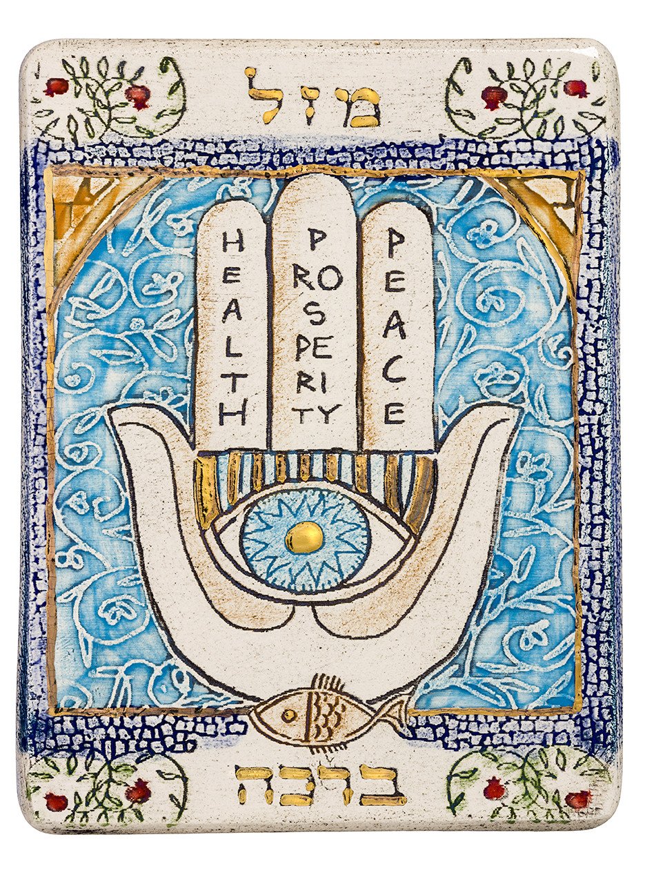Art Judaica Terracotta Hamsa Bold Ceramic, Hebre16 C