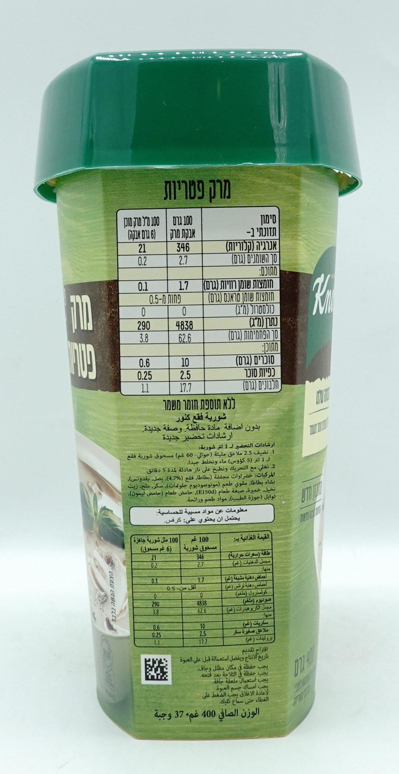 Ingredients: Dried vegetables (potatoes, mushrooms, onions and parsley), potato starch, monosodium glutamate, sugar, salt, palm oil, yeast, food coloring, nutmeg, flavorings and aromas.