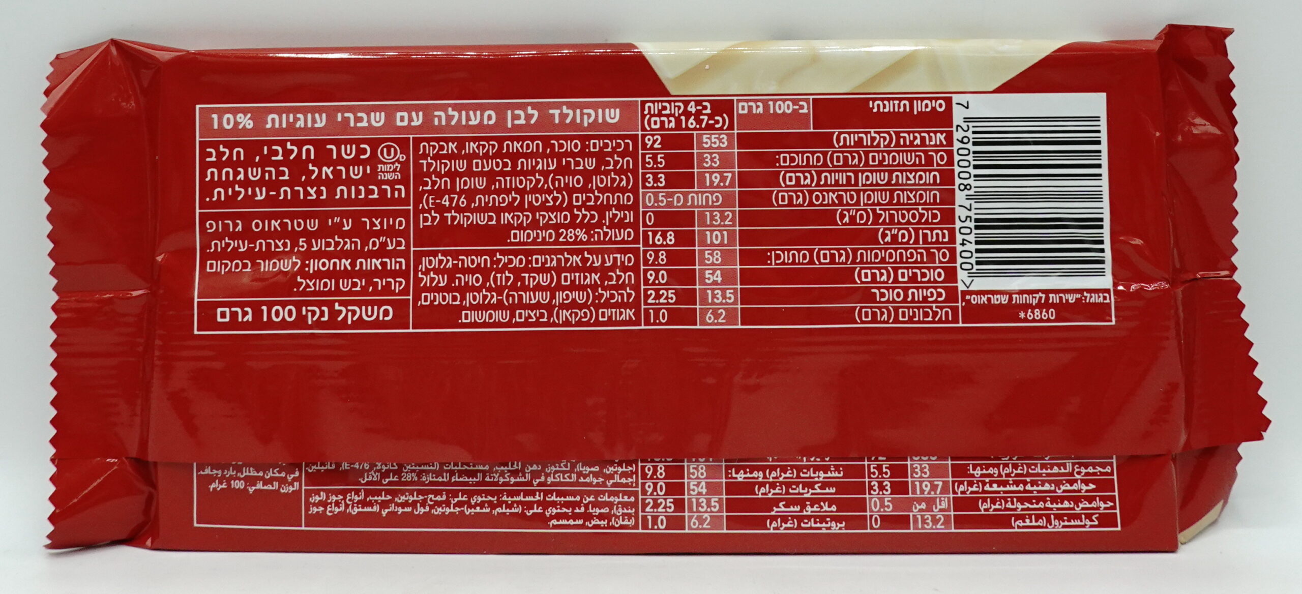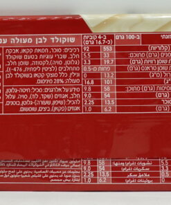 Contains: milk, soy (lecithin, on Passover lecithin from turnips). May contain: peanuts, sesame seeds, eggs, nuts (pecans, pistachios, walnuts, hazelnuts, cashews, almonds), (wheat, barley, oats) – gluten.