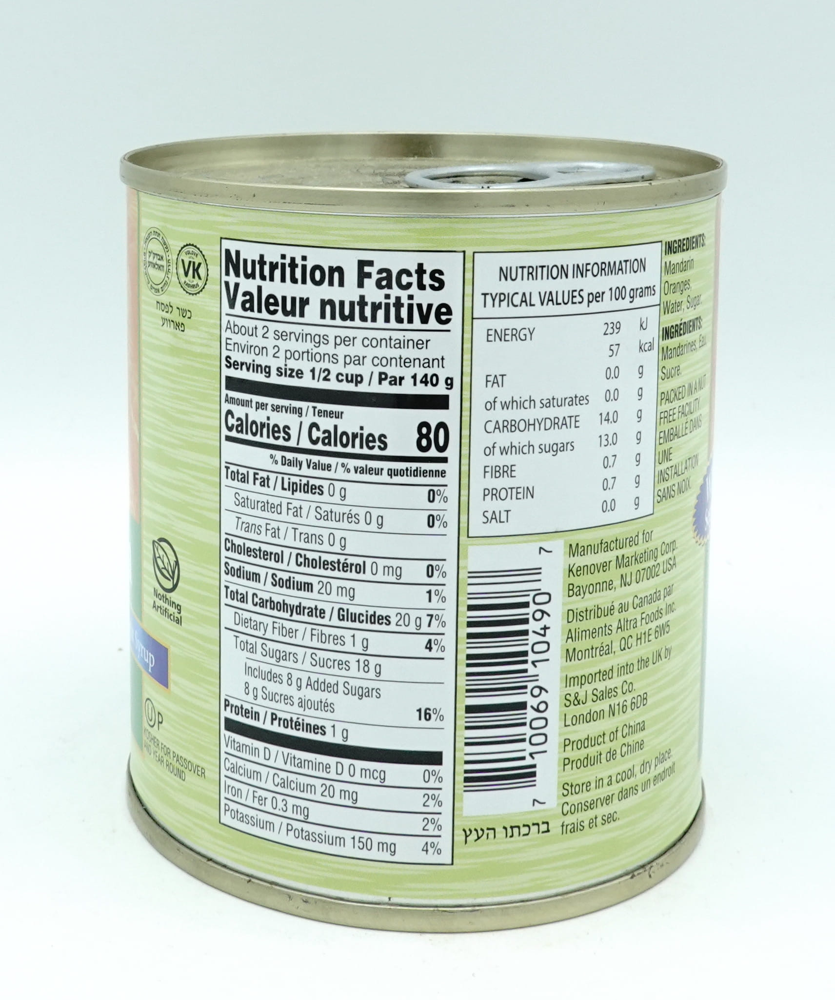 Mandarin Oranges, Water, Sugar.