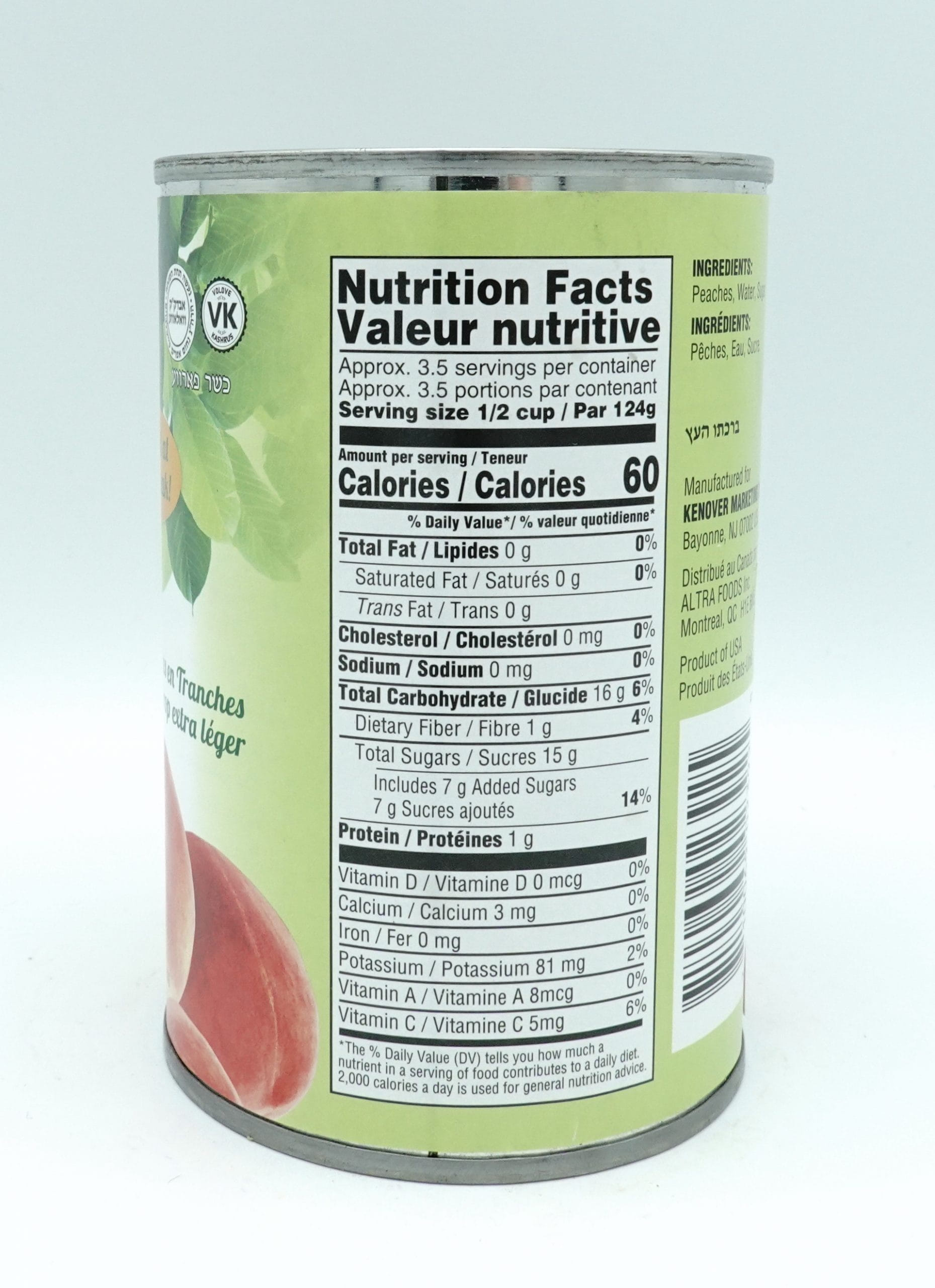 Peach Slices, Water, Sugar, Citric Acid.