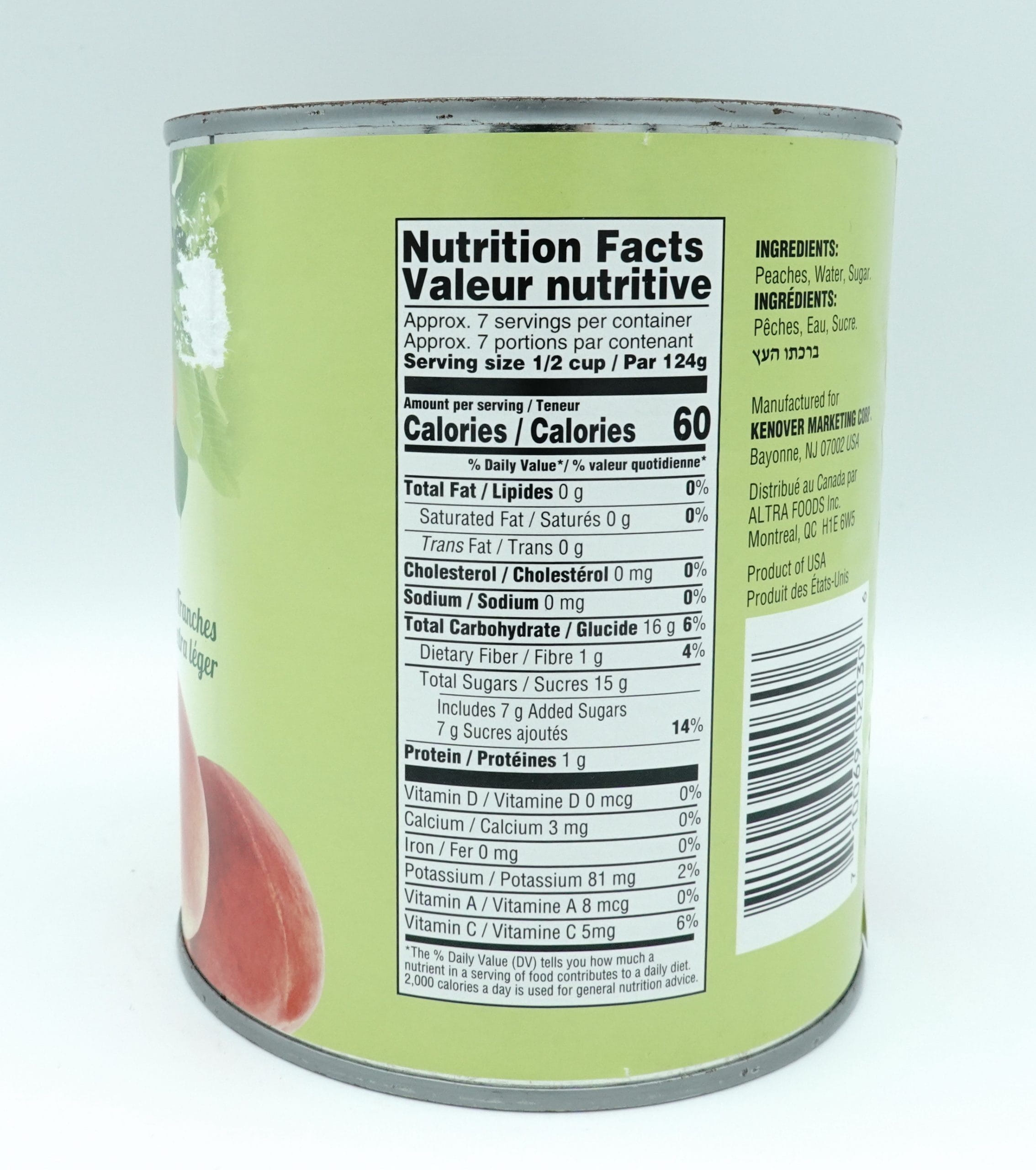 Peach Slices, Water, Sugar, Citric Acid.