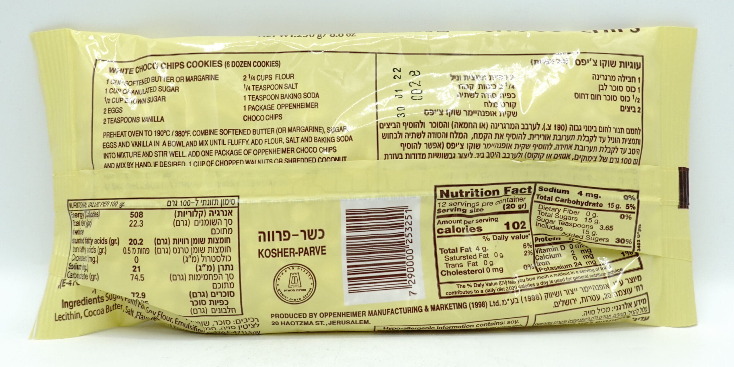 Oppenheimer White Chocolate Chips 300g, Parve