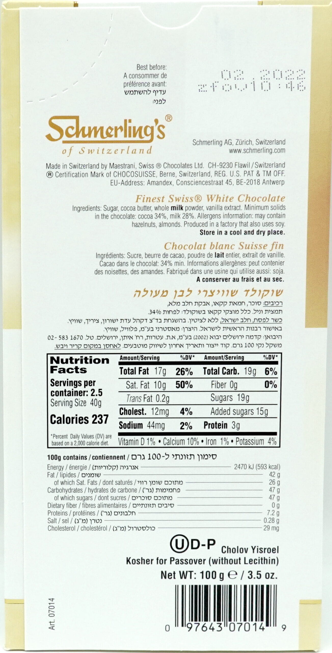 Schmerlings Rosemarie Chocolate Bar, Chocolate Blanc 100g - Image 2