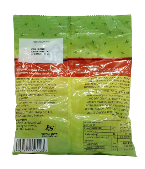 Yogueta Gummy Candies, Sour, Fruit Flavour Snake-Shaped 200g